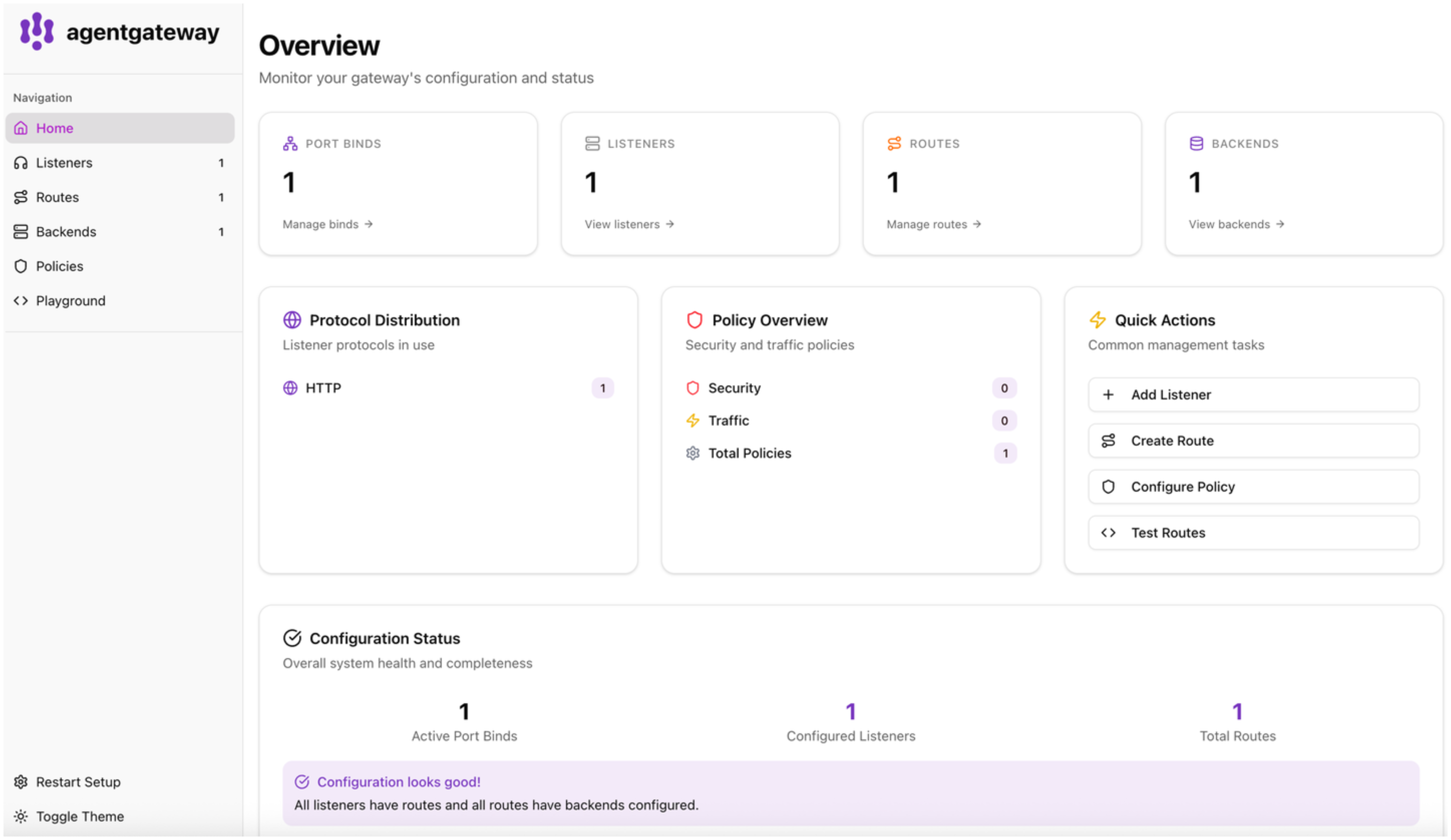 1. Open the built-in agentgateway UI on port 15000.